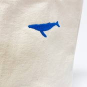自然保護の象徴であるクジラの刺繍を施したトートバッグ。